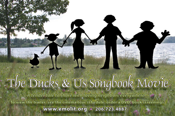 This image comes from The Ducks & Us Songbook Movie, Emotion Literacy Advocates' 6:46 minute animated movie on human interaction with wildlife; a movie on the go through cinema tours, film festivals and environmental learning programs.